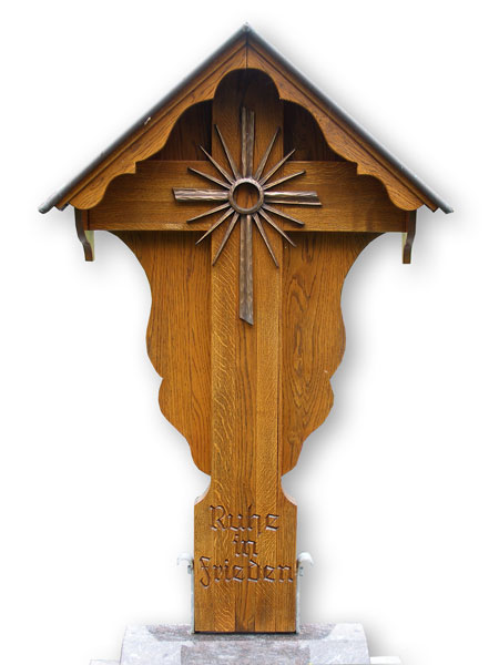 Gerne fertigen wir ein Grabkreuz komplett nach Ihren individuellen Wünschen und Vorstellungen oder aber Sie greifen auf ein bewährtes Muster zurück. Nachfolgend sehen sie dazu einige Gestaltungsbeispiele bzw. Muster nach denen wir ein Grabmal anfertigen können. Selbstverständlich können wir auch auf Ihre Sonderwünsche bezüglich der Holzart, des Wetterschutzes (Dacheindeckung), der Symbolik (Korpus, Kreuz, o.ä.), Beschriftung etc. eingehen. Bitte lassen Sie sich persönlich von uns beraten und ein Angebot erstellen...